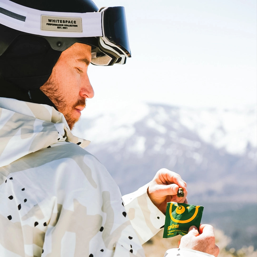 Shaun White is a paid spokesperson and investor in Grüns. He also still rips and loves taking Grüns to the slopes with him.